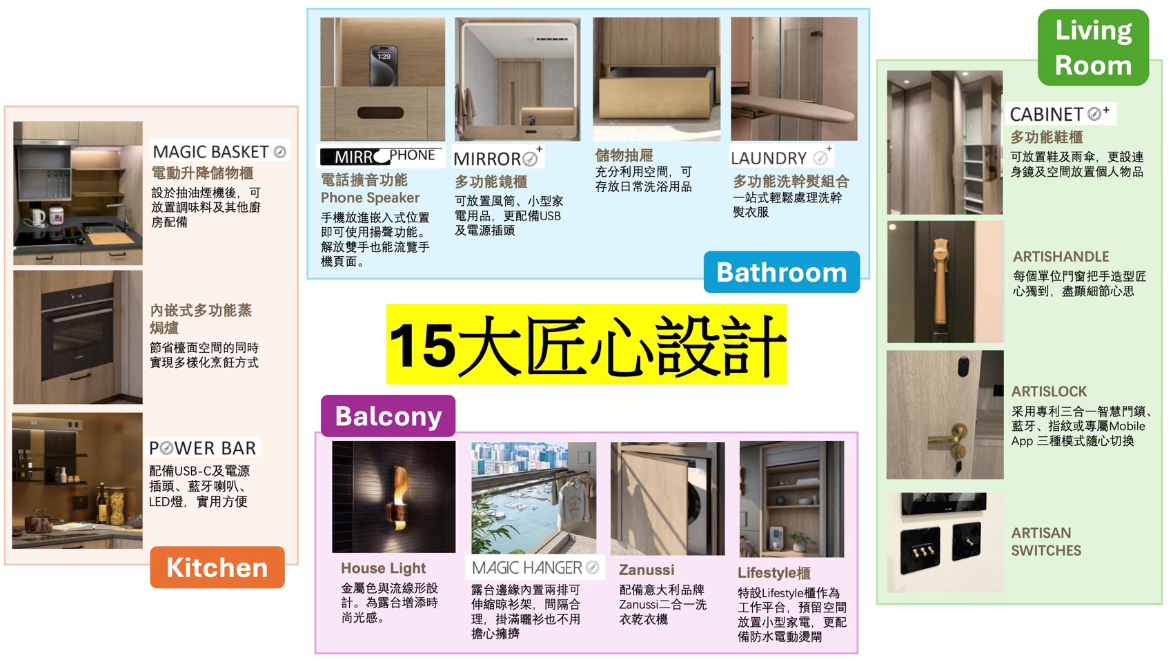 準買家如欲了解發展項目的詳情,請參閱售樓說明書。賣方亦建議準買家到有關發展地盤作實地考察,以對該發展地盤、其周邊地區環境及附近的公共設施有較佳了解。 1. 本網站只是為我們的使用者之間提供了一種更便捷的網上預約服務,但我們與使用者所經營的業務沒有任何形式的關聯,因此您作為用戶理解,每當同意交易時,您都直接與本網站以外的第三方協商處理。在任何情況下,本網站均不會被視為由第三方所提供的商品或服務達成的協議的中介人或一方。本網站對由第三方所提供的商品或服務不承擔任何責任,也不對第三方承擔任何責任或義務(包括但不限於與交易、購買、租賃、優惠或協議、廣告商缺乏執行交易的授權或廣告商品或服務的法律或物理狀態)。因此,我們亦鼓勵您採取預防措施,尤其是在進行任何形式的預付款時。 2. 本網站載有從第三者取得的資料,是由受《一手住宅物業銷售條例》(香港法例第621章)("條例")規管的發展項目的住宅物業賣方("賣方")提供,或由代表賣方的人士提供。本網站亦載有連結,連接到由第三者運作的網站。在本網站列出該等連結,不構成任何該等第三者或外界網站與本網站任何形式的合作或聯繫。 3. 本網站及其所有內容僅供參考,並不構成亦不得詮釋成作出任何不論明示或隱含之要約、陳述、承諾或保證。本網站亦不探求對發展項目任何物業的無明確選擇購樓意向或有明確選擇購樓意向。 4. 本網站旨在提供更多一手新盤資料及圖片檔案服務只供閱覽;不聲明或保證所提供訊息的準確性和完整性。在撰寫本頁面時,雖已作出合理和謹慎的考慮,對資料的完整和準確性恕不保證、明示或暗示絕對無誤。資料有可能出現售價、現金或其他條件上的改動、或撤回而不經提前通知,並可能受特別條款約束。 5. 本網站所提到房屋面積如無特別標示,均指實用面積。 6. 本網站所載資料內所描述或顯示之任何會所各區域及設施的名稱為推廣名稱並僅於推廣資料中顯示,將不會在公契、臨時買賣合約、買賣合約、轉讓契或其他業權契據中顯示。賣方保留權利修改會所及康樂設施的設計、用途及名稱而無須另行通知。會所及/或康樂設施之落成期以屋宇署、地政總署及/或其他相關政府部門之最終批核為準,並於住宅物業入伙時未必可即時使用,部份設施及/或服務的使用或操作可能受制於有關部門發出之同意書或許可證,並有可能收取額外費用。 7. 本網站所載繪圖純屬畫家的藝術創作,並非以發展項目及發展地盤四周範圍作依據製作,及非反映發展項目或其任何部分之外觀和景觀或展示發展項目任何部分之裝置、裝修物料或設備,亦與發展項目無關,本繪圖非按照比例繪畫,另經電腦作畫面處理以達致較佳視覺效果,僅供參考,並不構成亦不得詮釋成作出任何不論明示或隱含之要約、陳述、承諾或保證。發展項目的周邊環境、建築物及設施會不時改變。有關本發展項目及其周邊地區環境之整體發展規劃當按照政府有關部門最後之批准及修訂為準。賣方並不就發展項目及附近地段的周邊環境、建築物及設施的現在或將來的使用、處置、發展或其他方面作出任何形式的保證或陳述。發展項目之外觀設計概念圖經電腦修飾處理,僅作顯示發展項目部分大概外觀之用,並非顯示發展項目或其周邊之建築物及環境。發展項目建築物外牆之冷氣機、喉管、導管、格柵、發電機排氣喉及其他機電設施及屋頂上的天線及避雷桿等均無顯示。所顯示之外牆物料及顏色、植物、燈飾、燈光效果及其他物件亦可能因各種因素而與實際有異,亦未必會在日後落成的發展項目或其附近範圍內出現。相關設計概念圖並不反映發展項目實際外觀和景觀,亦非說明發展項目最後落成之面貌。賣方亦保留根據有關政府部門批核的最新建築圖則修改發展項目及其任何部分的權利。相關設計概念圖並不構成亦不得詮釋成作出任何不論明示或隱含之要約、陳述、承諾或保證。上述僅為發展項目不同部份之不同景觀的大概描述除,並不代表所有單位享有相關景觀。景觀受單位所處層數、座向、及周邊建築物及環境所影響,並非適用於所有單位。 8. 本網站保留一切權利,可隨時省略、暫停或編輯本網站的所有資料,而無須給予任何理由,亦無須事先通知。在根據本網站的任何內容行事之前,你有責任自行評估該等內容,並加以核實,例如參閱原本發布的版本和其他相關文件,以及徵詢相關專業人士的獨立意見。 私隱政策 1. 私隱政策的適用範圍 1.1 私隱政策內容涵蓋本網站如何處理收集或接收的個人資料,包括有關用戶瀏覽及使用本網站服務的資料。個人資料是指可識別閣下身分的資料,包括但不限於稱謂、姓名、性別、電話號碼、電郵地址、住宅地址、身份證或護照號碼、生日資料、國籍及有關牌照號碼,及一般非公開的資料。 1.2 私隱政策不適用於並非由本網站聘用或管理的人士,也不適用於並非由本網站擁有或控制的公司政策。 2. 資料收集及運用 2.1 在你申請本網站服務時本網站會收集你的個人資料。本網站可以將你的個人資料與從商業夥伴或其他公司取得的資料結合。 2.2 本網站會自動從閣下的瀏覽器上,接收並且紀錄伺服器的數值,包括IP地址、本網站 cookie 中的資料及閣下要求取讀的網頁紀錄。 2.3 本網站會使用資料作以下一般用途: